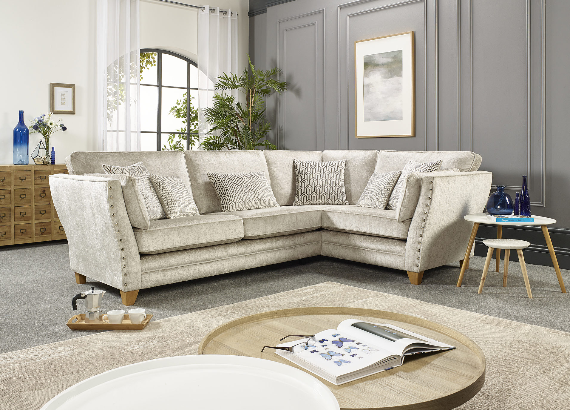 The Athena is a glamorous, industrial style model which adds luxury to any living space. The elegant curved arms create a bold silhouette which is emphasised by metal studs lining each arm outer edge. Soft bolster cushions fit the curvature of the arms to provide luxurious comfort at all times.The metal studs allow the Athena to be perfectly paired with silver home accessories, setting the scene for a sophisticated and glam interior. As well as this, the studded arms allow industrial accents to sit perfectly alongside this model. We have also added a non-studded version to the collection.This timeless design with perfect lines and proportions, featuring beautiful fabrics, both tactile and soft combination of velvet and chenille.High arms cushioned by soft bolsters to wrap you in stylish comfort, the glorious finishing touches are the stunning metal studs shinning like jewels.