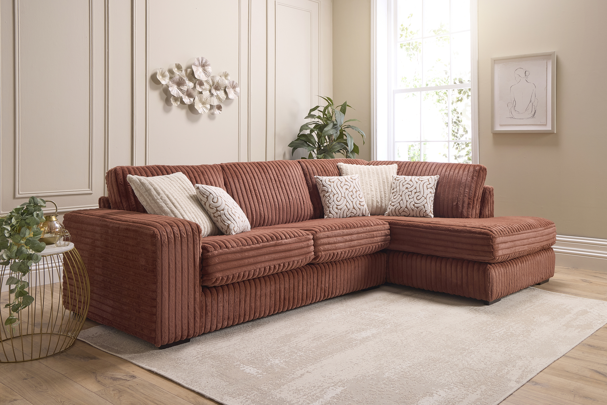 Layton is a contemporary design made for you to relax into, it’s soft cosy seats and backs offer comfort and gentle support, the generous proportions allows room to lie back and put your feet up. The Layton’s on-trend design is set off by the beautiful soft high piled sculptured cord fabric which is complimented by contrasting coloured large scatter cushions, and modern pattern on the smaller cushions which all add up to a striking statement in any style of home.
