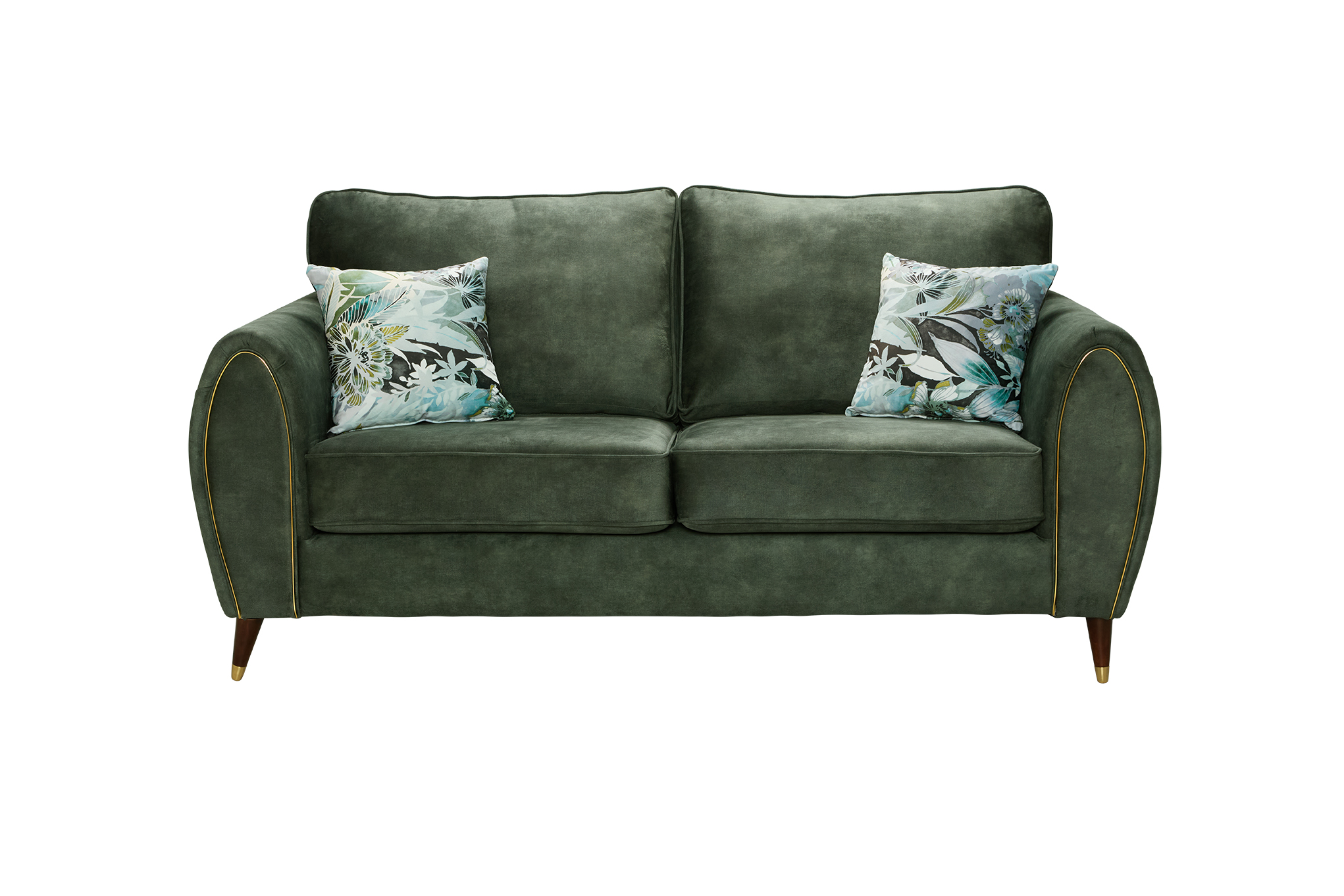 Elegant and luxury, the Denver sofa range boasts good looks and versatility with its useful arm pocket storage. Upholstered in a choice of stunning jewel tones, it stands tall on brass/solid wooden legs that perfectly complements the design.